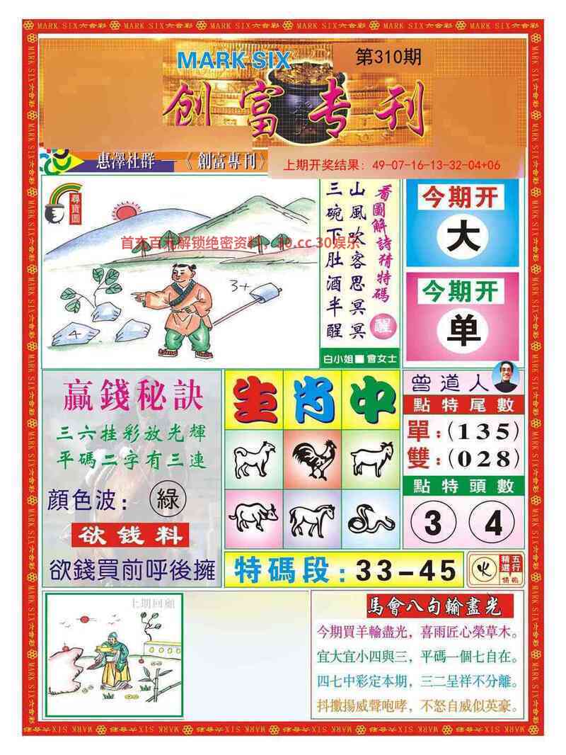 310期七肖【鼠虎猪牛鸡马羊】开虎16准
